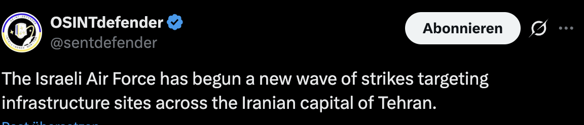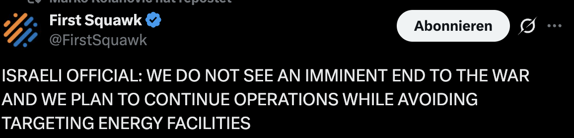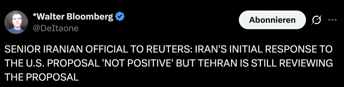 Wenn es darum geht, dann hätte Trump auch Israel bremsen müssen. Denke das wird weiter eskalieren, spätestens zum Wochendene.