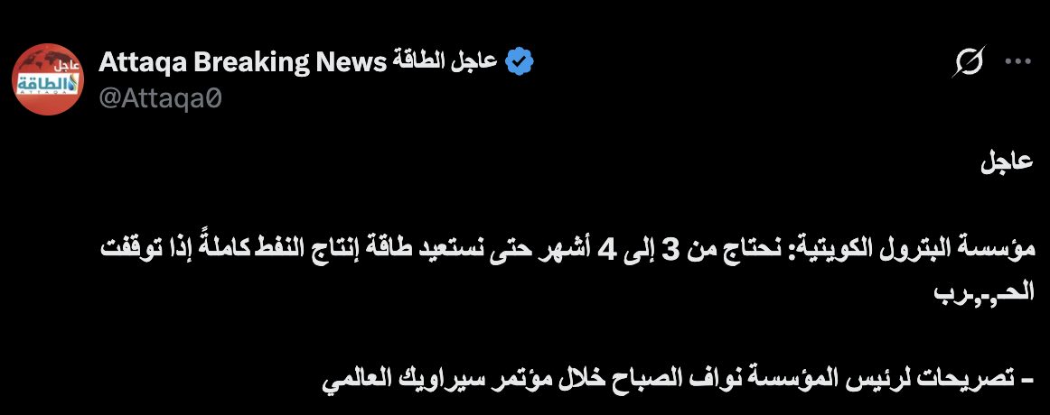 Übersetzt steht da: Kuwait Petrolium braucht mindestens 3-4 Monate um die ÖLproduktion wieder aufzunehmen.