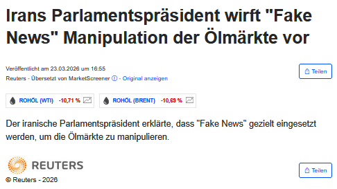Mit wem verhandelt Trump? Mit sich selbst? Mit Pakistan?, den Saudis? dem Oman? Mit dem iranischen Parlamentspräsident? dem Außenminister? Könnte tatsächlich alles nur ein schlechtes Theaterstück sein....