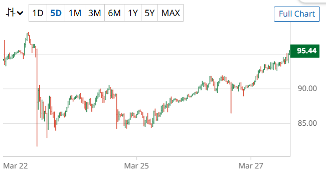 Juni CL Öl Future handelt aktuell bei über $95