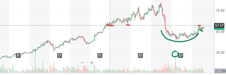 EHTH: Von 64 auf 67 und dann runter auf 59.5 in 10 Minuten. Auch nicht schlecht...