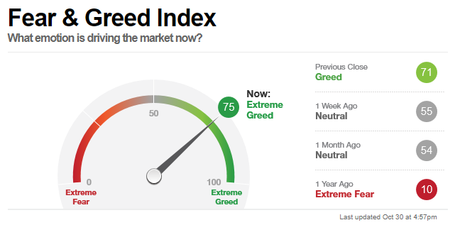 Das F&G ist bei über 70, was doch eher negativ für weitere Käufe ist.