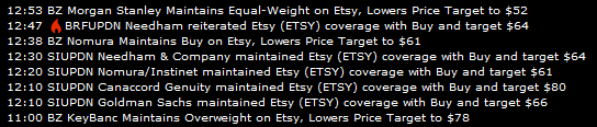 * Etsy (NASDAQ: ETSY) reported Q3 EPS of $0.12, in-line with the analyst estimate of $0.12. Revenue for the quarter came in at $197.95 million versus the consensus estimate of $193.53 million.