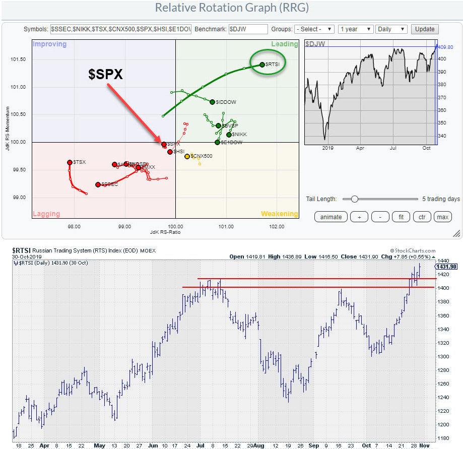 Über die Relative Rotation Graph fällt der Russische Markt derzeit positiv auf.
