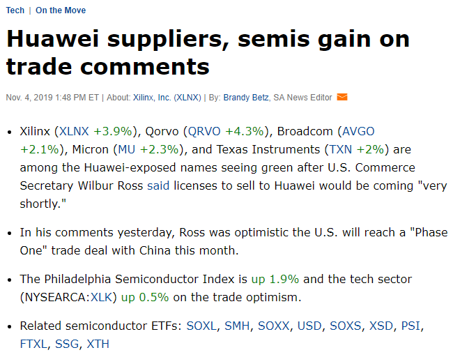 Financial Times: Die USA erwägen die Rücknahme von Strafzöllen auf chinesische Waren im Wert von $112 Mrd. pro Jahr. Das Weiße Haus sei demnach zu Zugeständnissen bereit, um den ersten Teil eines Handelsabkommens mit Peking abschließen zu können.