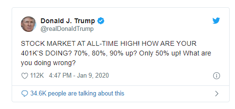 President Donald Trump: You’re doing it wrong if your ‘409K’ is up only 50%