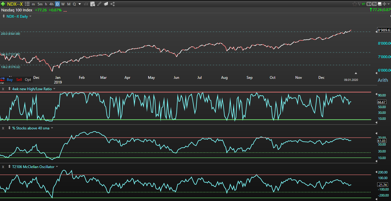 Bei meinen drei wichtigsten short-term Market-Breadth Indikatoren sehe ich aktuell keine echten Übertreibungen. Im Gegenteil, das Gemetzel im Iran hat sogar etwas Luft gegeben. Wie das aber in 2-3 Wochen aussieht, weiss ich natürlich nicht. Die letzte Laterne vom Strassenrand kratzen würde ich jetzt auch nicht mehr. Das wäre letztmalig Anfangs Dez. 2019 resp. Anfangs Okt 2019 der Fall gewesen. Bin überhaupt nicht mehr erstaunt, wenn der Nasdaq 100 direkt Richtung 11300 weiter läuft.