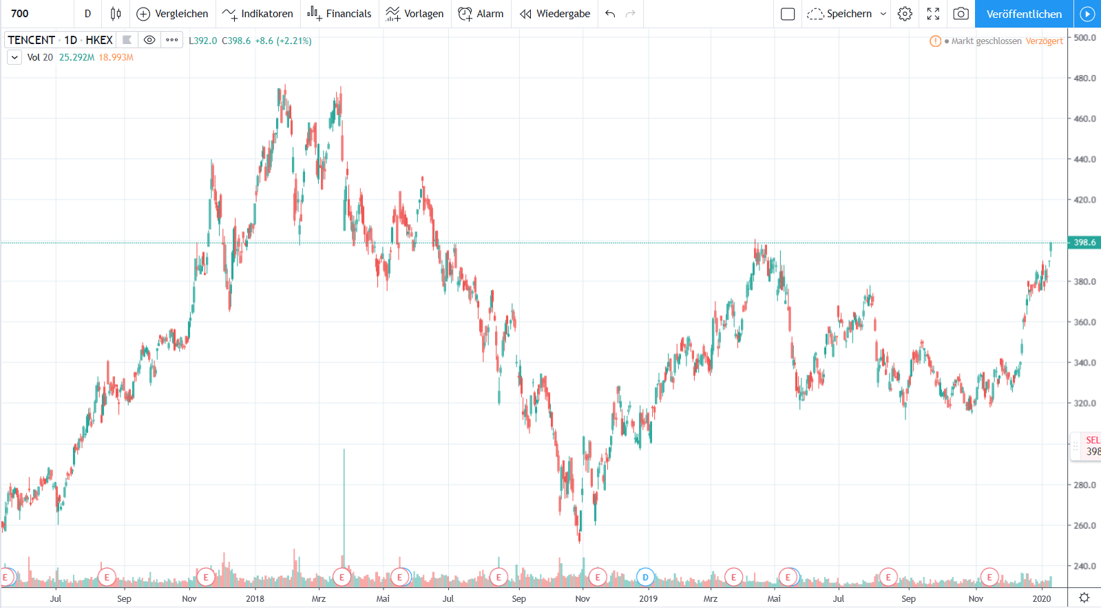 Da Tencent quasi das Google, Facebook, Gaming-Company, Zahlungsverwalter etc, von der Bevölkerungsreichsten Nation der Welt ist, durchaus auch ein Titel für langfristige Anleger.