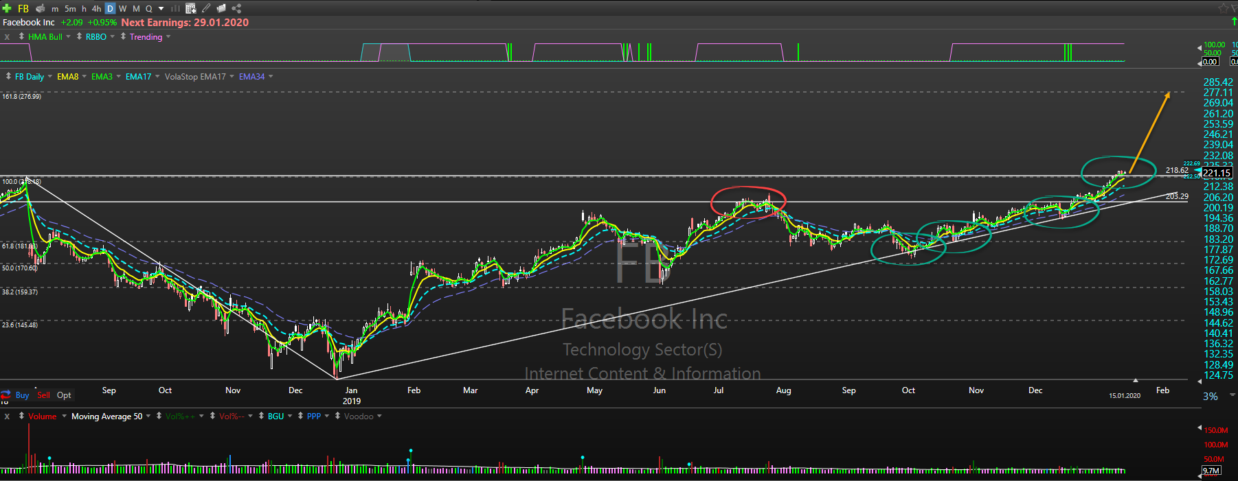 Charttechnisch steht FB vor Blue-Sky Territory, nächstes Ziel ist bei 277$ un dem 161er Fibo, was eine 25% Potenzial entspricht.