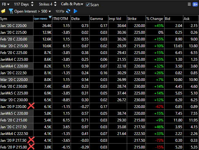Auf der Optionsseite fällt auf, dass eine extreme Dominanz bei den Calls über die nächsten 117 Tage herrscht.