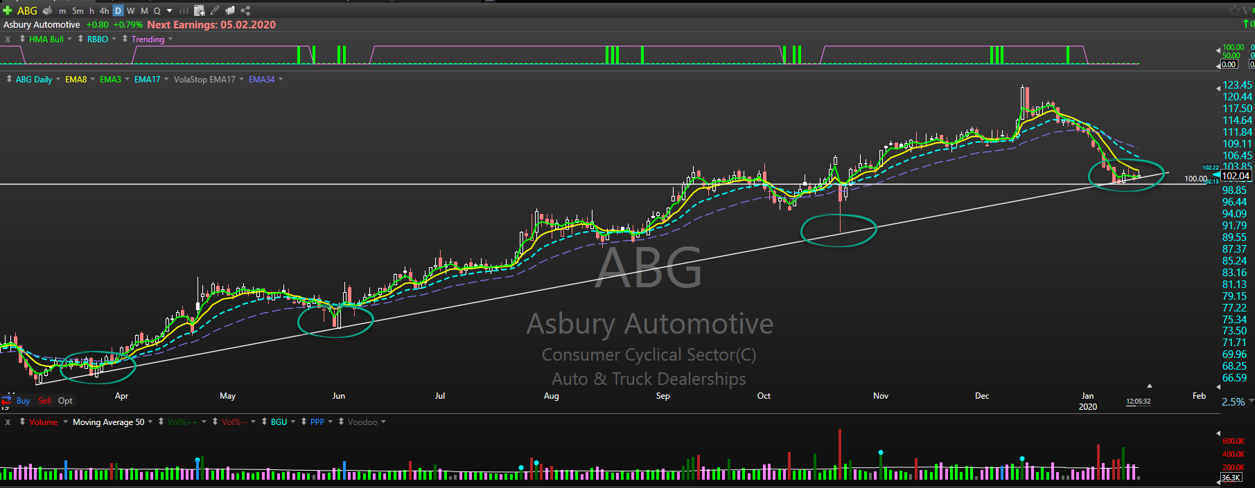 ABG könnte nun am Trendkanal und der 100$ Century Marke drehen oder Boden bilden