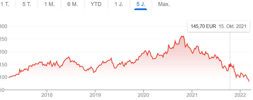 Ende Oktober 2021 eine Position aufgebaut nachdem ich gedacht habe die Aktie fängt sich solangsam. Für ca 153€