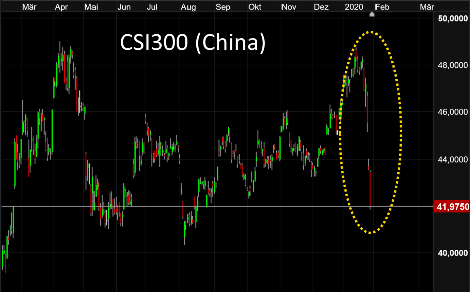 Bei allen News um das Thema sollten wir auch berücksichtigen, dass der Markt zuletzt ja ziemlich heiß lief und eine Korrektur durchaus gesund wäre. Ich denke die starken Bemühungen Chinas und die Aufmerksamkeit der anderen Länder und Unternehmen, sollten dafür sorgen, dass hier relativ schnell Ruhe einkehren sollte. Auch wenn hier kurzfristig wirtschaftlicher Schaden entsteht, ist die aktuelle Variante besser als sich unvorsichtig zu benehmen und eine große Ausbreitung zu riskieren.