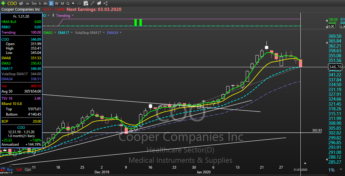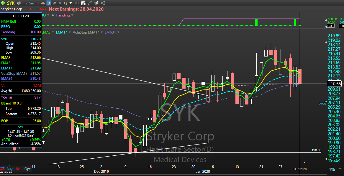INCY auf dem Support und 61er Fibo angekommen. Sieht interessant aus, Zahlen am 13.2.2020.