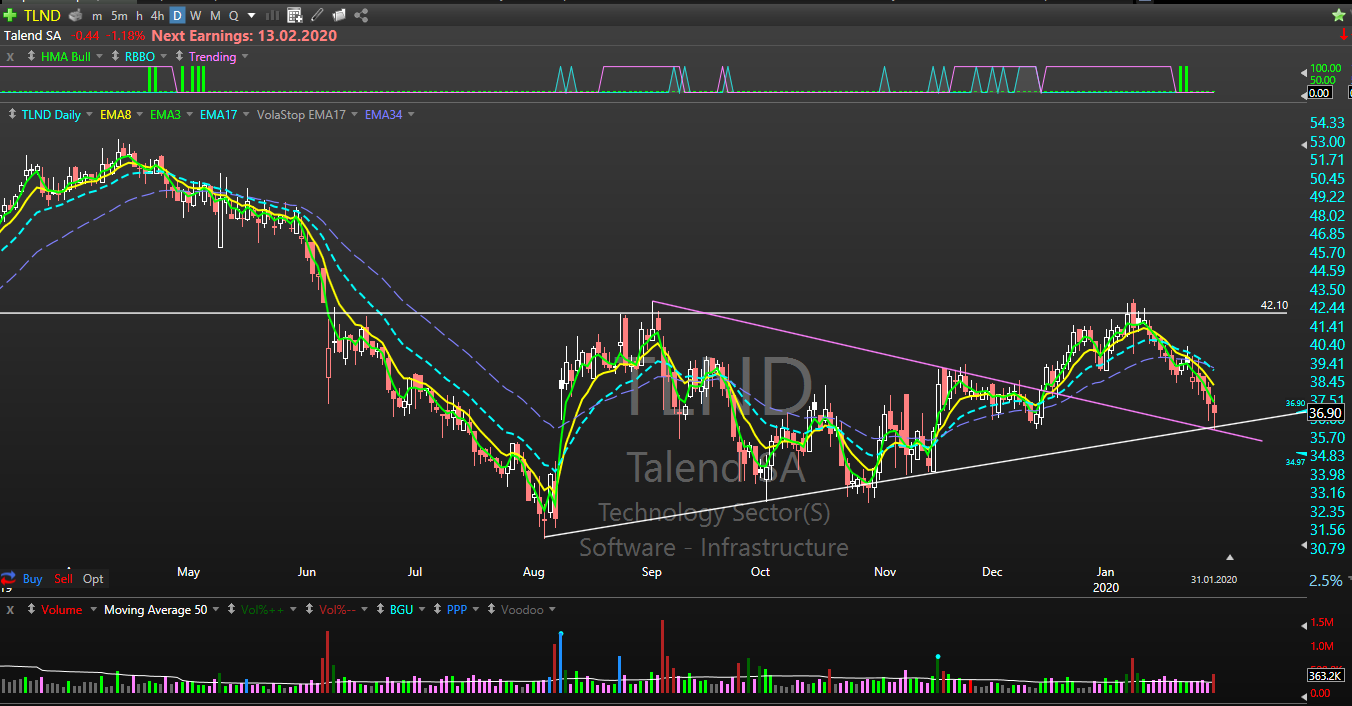 TLND bisher durchgereicht bis an den unteren Trendkanal. Setup jetzt wieder attraktiv. Zahlen am 13.2.2020.