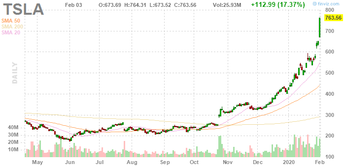 Tesla mal wieder short zu 756.45 USD. Heute mit Monstervolumen und Monsterkerze der (finale?) Squeeze.
