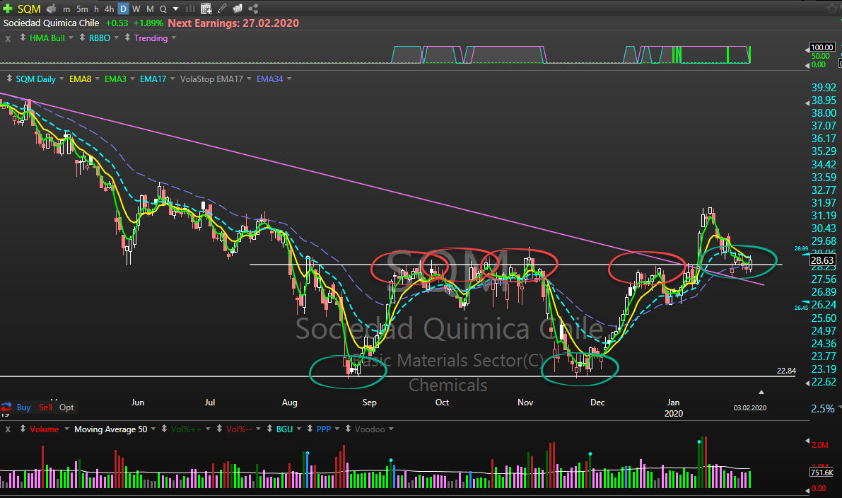 SQM nach dem Breakout mit einem Test am alten Widerstand, welcher jetzt als Support dient.