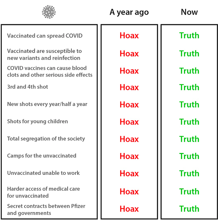 Es handelt sich um die "Sunk Cost Fallacy" zu deutsch "Versunkene Kosten": Wer jetzt schon gespritzt wurde, versucht sich das Schönzureden. Da stören auch Widersprüche nicht.