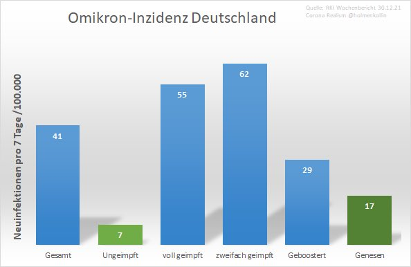 Die Ursachen für dieses aktuell auffällige Verhalten der Omikron Variante sind an dieser Stelle nach meinem Informationsstand unklar. Aber dieses Verhalten der überproportionalen Ansteckungsraten Geimpfter bezüglich Omikron ist aktuell in mehreren Ländern unabhängig voneinander vorhanden.