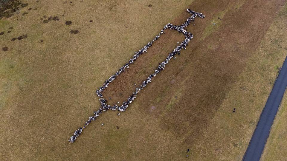 „Sp(r)itzen-Aktion! Schäfer aus Schneverdingen in Niedersachsen haben mit 700 Schafen und Ziegen eine rund 100 Meter große Spritze gebildet – und so für das Impfen geworben.“