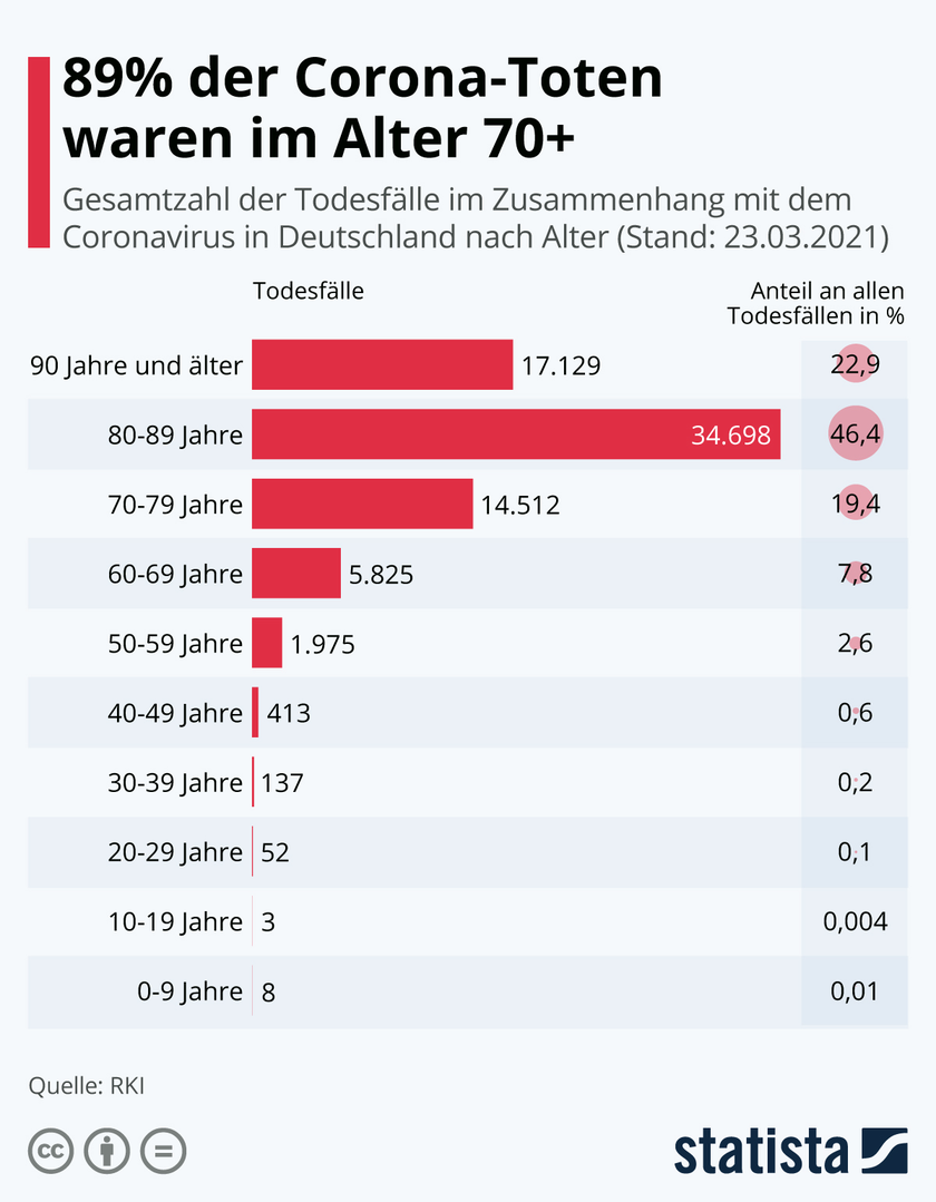 Knapp 90% der Covid Toten sind über 70 Jahre alt