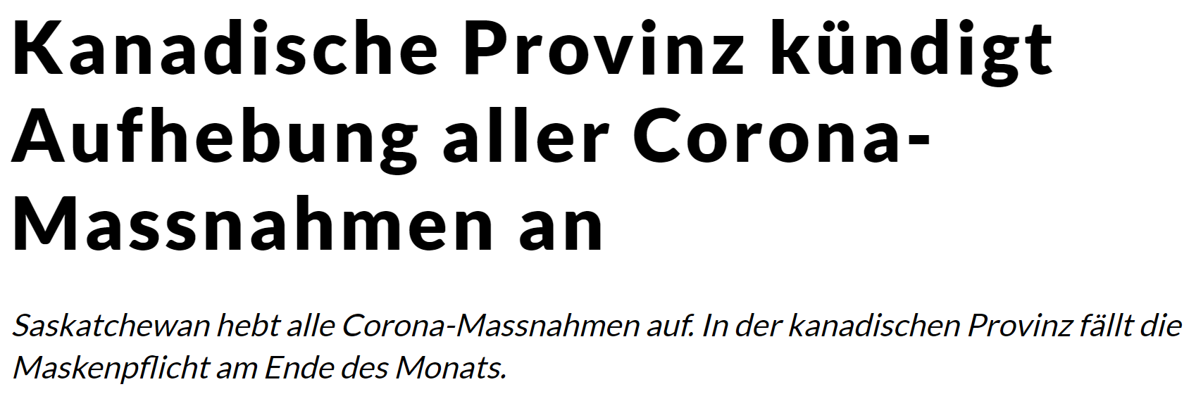 Ich verfolge die kanadische Politik nicht. Ich habe weder Möglichkeiten, noch die Zeit die Kanadier zu unterstützen. Daher ist es bedauerlich, was dort passiert, aber nicht mein Bier. Ich mache meine Sichtweise auf Deutschland und dessen Coronapolitik nicht von kanadischen Entscheidungen abhängig.