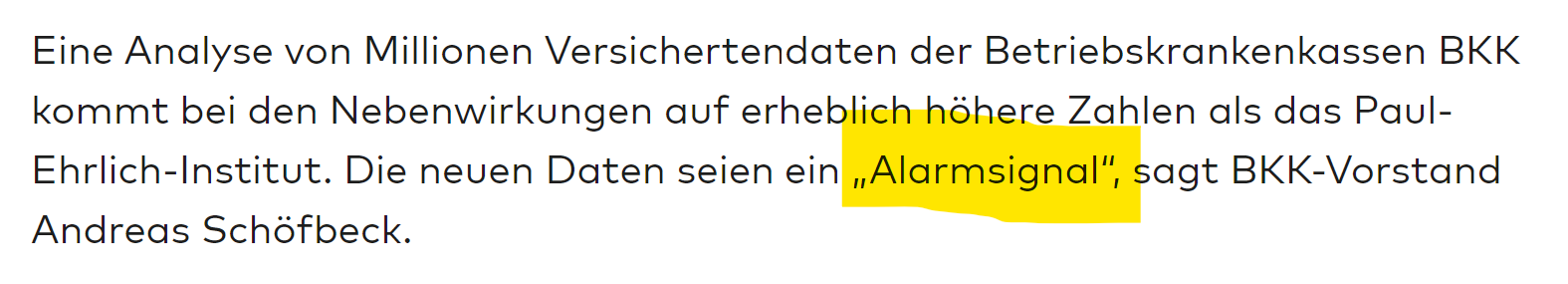 Das Virus ist für die Risikogruppen gefährlicher als die Impfung. Die Impfung scheint Long-COVID zu reduzieren, etc. Aber das wird wahrscheinlich wieder abgestritten. Deswegen „sadly“.