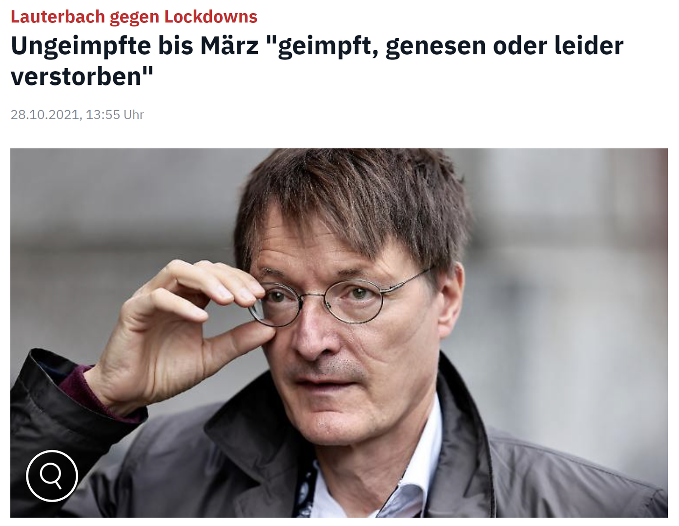 Glaube die SPD würde inzwischen den alten Karlo gerne los werden weil er so ein Panikmacher Clown geworden ist. Wenn's nach dem ginge würden wir wohl draußen und beim Sex auch Masken tragen.