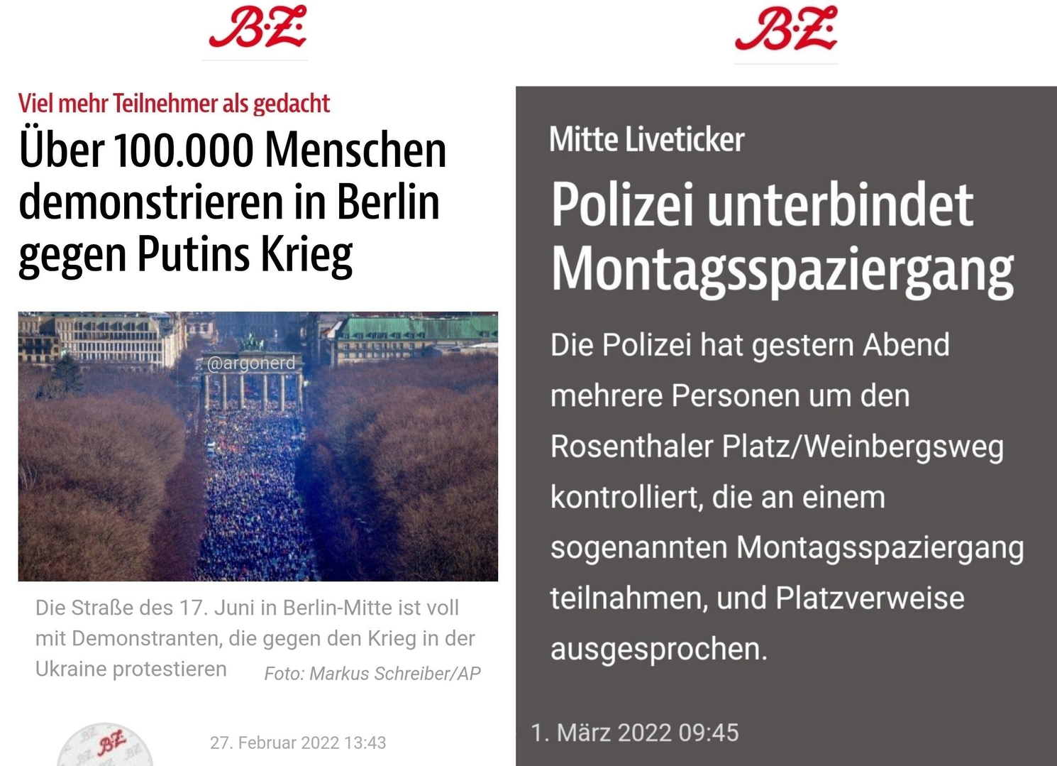 @martin ich weiß, die Realität beeinflusst deine Meinung schon lange nicht mehr, aber kannst ja mal schauen, wie so die Masken bei der Friedensdemo getragen wurden, welche der beiden Demos angemeldet wurde und welche sich an Auflagen gehalten hat.