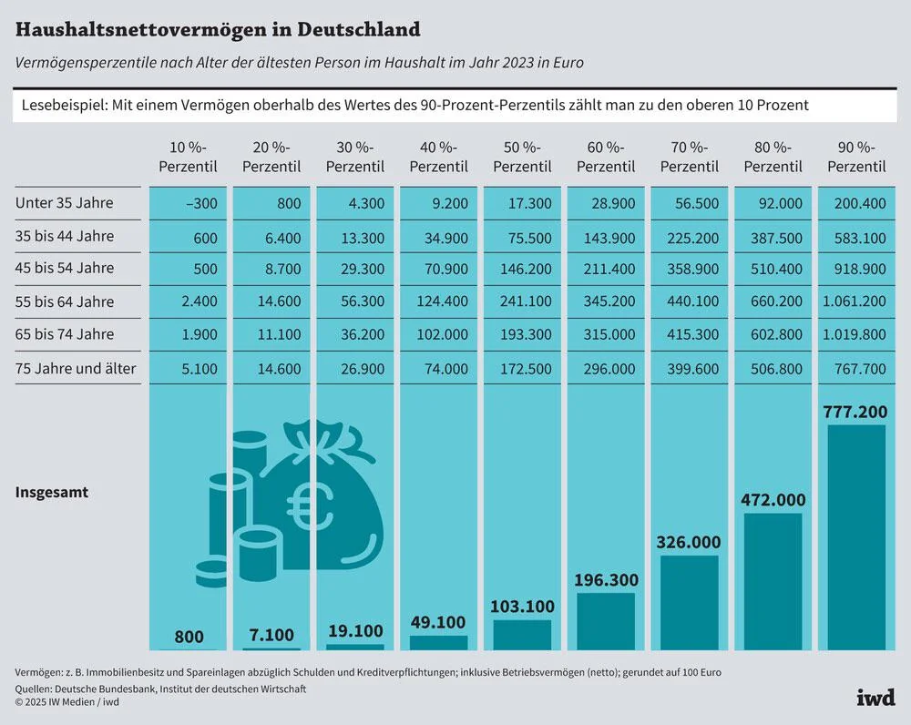 Aktuelle Vermögensübersicht nach Alter in Perzentilen der Deutschen von IWD: