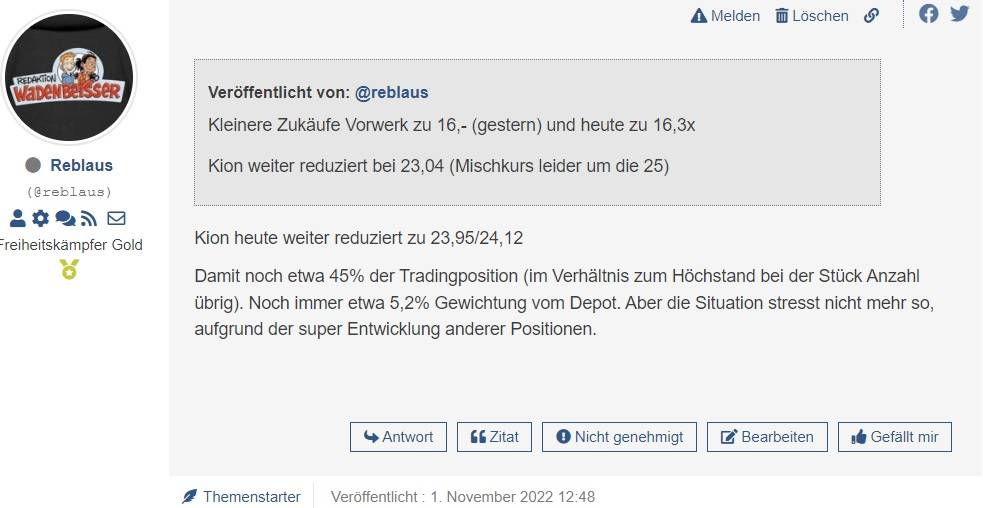 Ja werde ich sowieso hier posten. By the way, da ist auch ein Fehler in der Zeile von Aixtron. Initialkauf war am 26.9.22. Den 26.10. haben wir erst morgen ;)