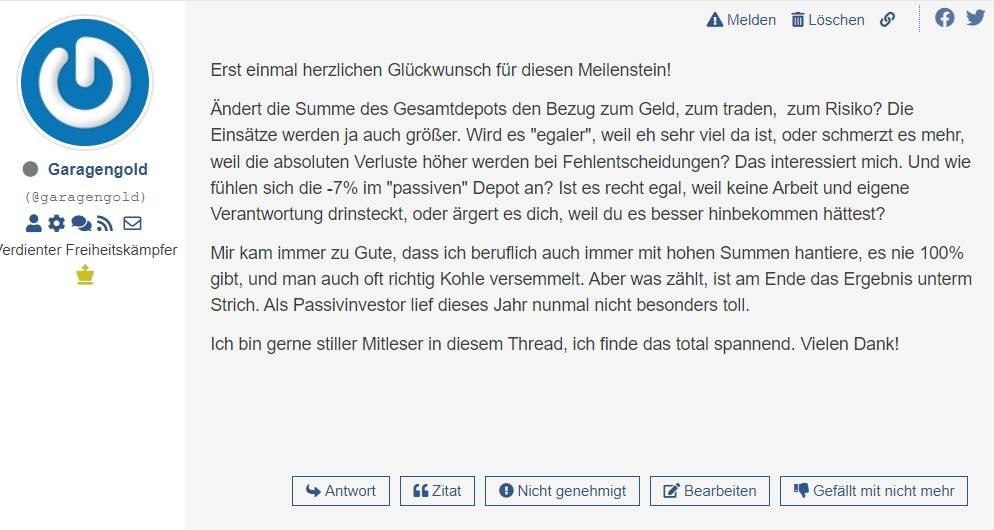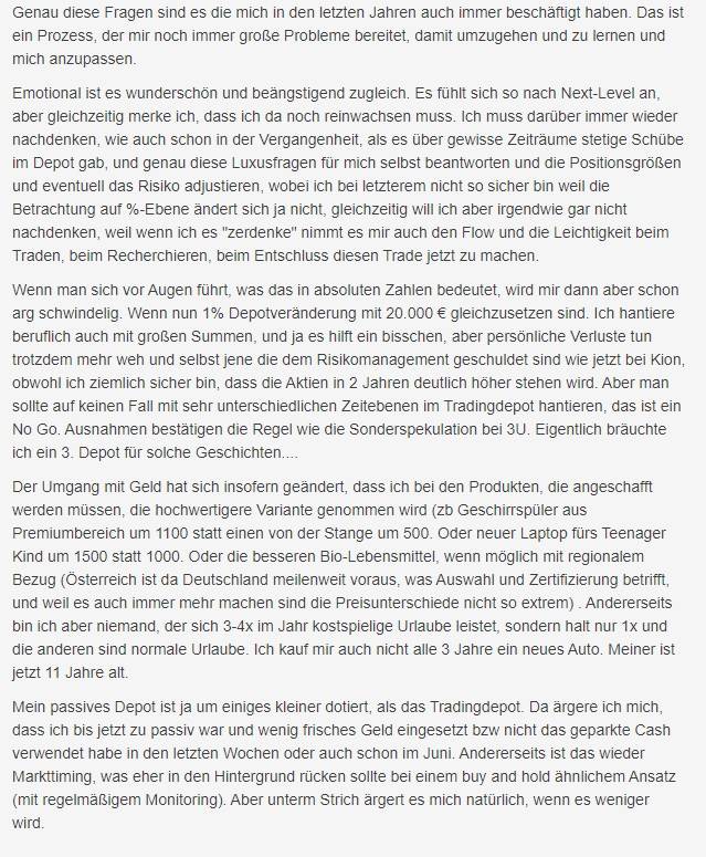 War ein sehr volatiler Monat, aber Performance von mehr als 6%-Punkten sehr in Ordnung nach dem katastrophalen September. Ein paar Moderna und Activision Blizzard, sowie ganz aktuell ein paar Siltronic fanden den Weg ins Depot. Kion Rebound läuft endlich, vielleicht wird ein weiteres Teilvk Limit die Tage getroffen.
