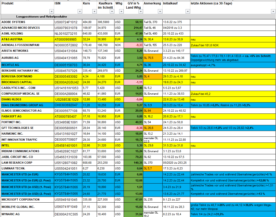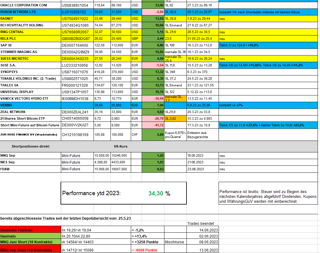 die breite Absicherungen in den Mini-Futures von DAX, S&P500 und Nasdaq100 helfen aktuell sehr, jedoch gibt es trotzdem einige Wackelkandidaten im Depot. Das heißt, hier möchte ich in die nächste Gegenbewegung einige Verkäufe bzw. Teilvk vornehmen. Möglicherweise wird auch der eine oder andere (System-)Stop gezogen, wenn es weiterhin mühsam bleibt.