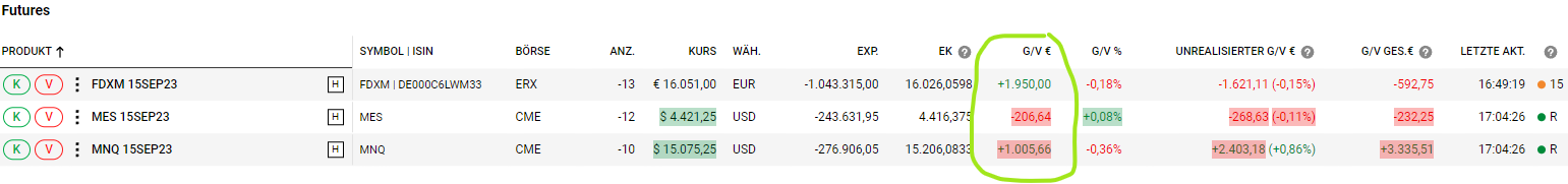 Interessanterweise laufen die Longpositionen gut und teilweise heiß, wie auch hier in der Tagesperformance erkennbar: