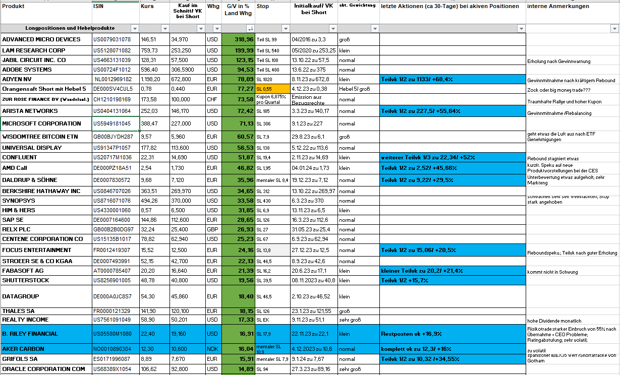 Die Posi war von Anfang an mühsam und ich musste viel drum herum traden. Leider bei gutem Wind zum Jahreswechsel den Ausstieg verpasst.