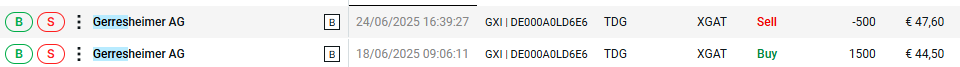 Ansonsten habe ich noch einen Reboundtrade in Gerresheimer gestartet, nachdem die Übernahme doch noch stattfinden könnte. Hier habe ich aber auch schon einen Teilvk zu 47,6 (kk war 44,5) gemacht