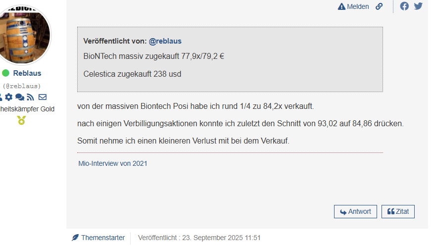 von der massiven Biontech Posi habe ich rund 1/4 zu 84,2x verkauft.