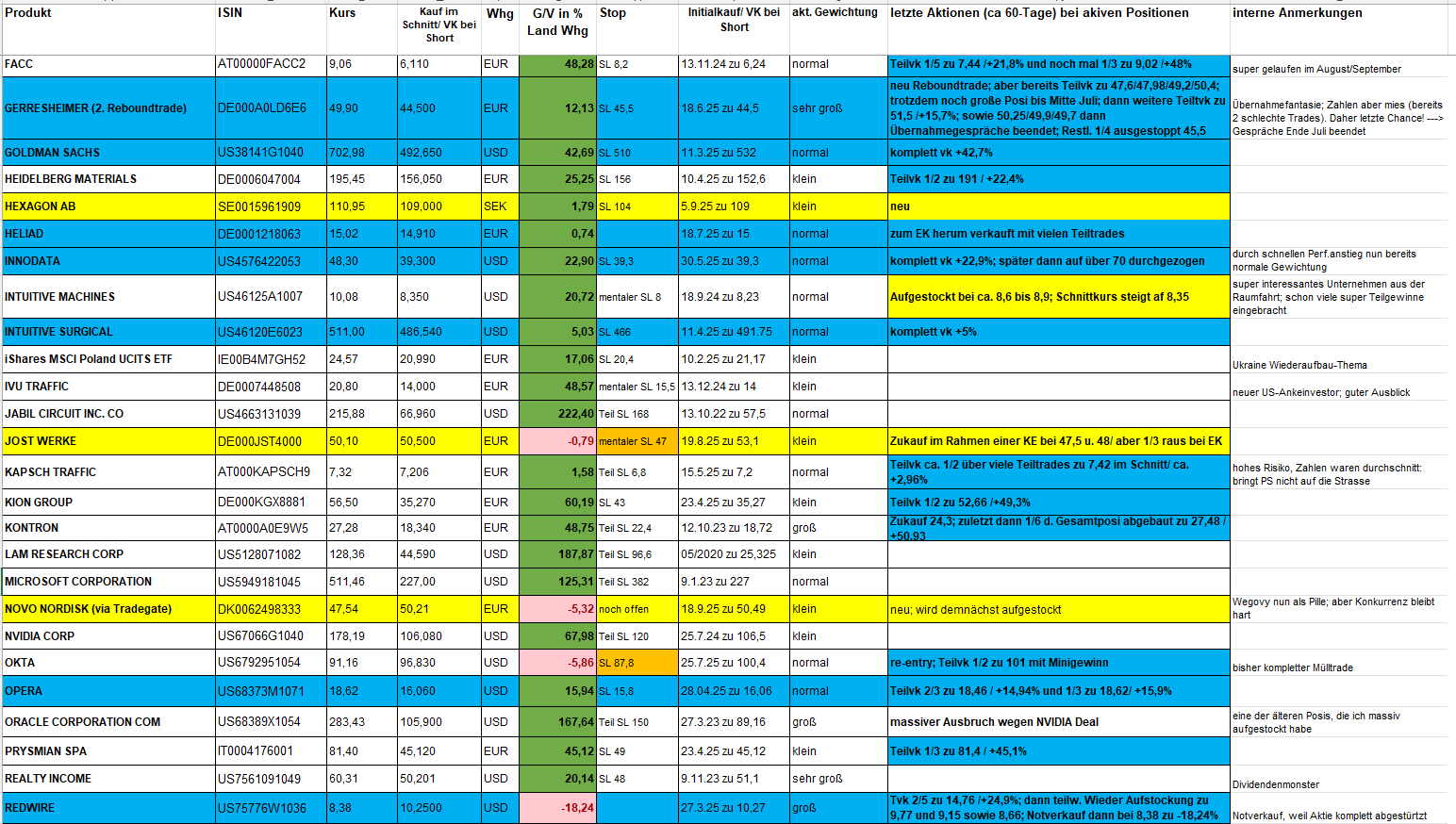 viel passiert in den letzten 2,5 Monaten seit der letzten Übersicht. Sehr viele Verkäufe und Teilverkäufe.