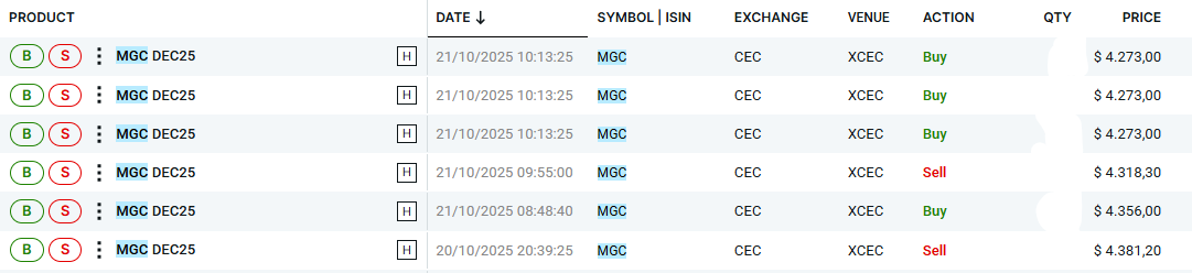 Der Micro Goldfuture entspricht 1/10 des normalen GC. Also 10 aUSD je Punkt und Kontrakt. 10 Kontrakte entsprechen somit 1 GC Kontrakt