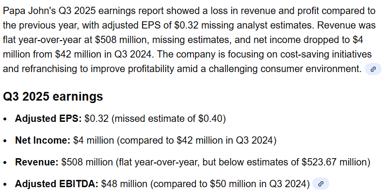 Papa John’s International Inc. (NASDAQ: PZZA) is reportedly in advanced discussions to be acquired in an all-cash buyout by a consortium led by TriArtisan Capital Advisors. The proposed offer is approximately $65 per share, valuing the pizza chain at roughly $2.7 billion, according to people familiar with the matter.