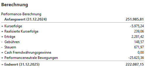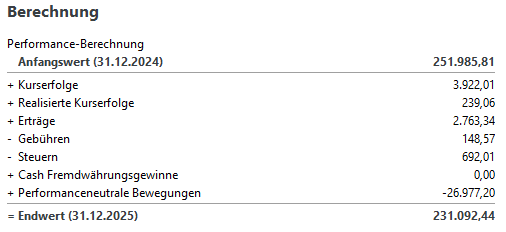 Unter dem Strich haben wir für das Jahr 2025 gerundet -15.200€.
