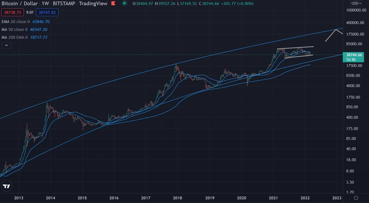 Falls diese Einschätzung passt, wäre das positiv für Bitcoin in den nächsten Monaten, wenn sich die Ukraine Krise an dieser Stelle nicht noch weiter verschärft (z.B. durch eine Nato Flugverbotszone).