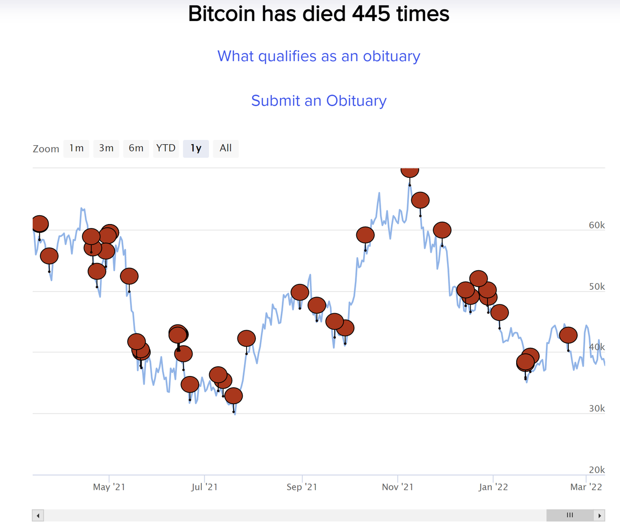 Vielleicht gibt's heute einen neuen Eintrag auf https://99bitcoins.com/bitcoin-obituaries/ ?