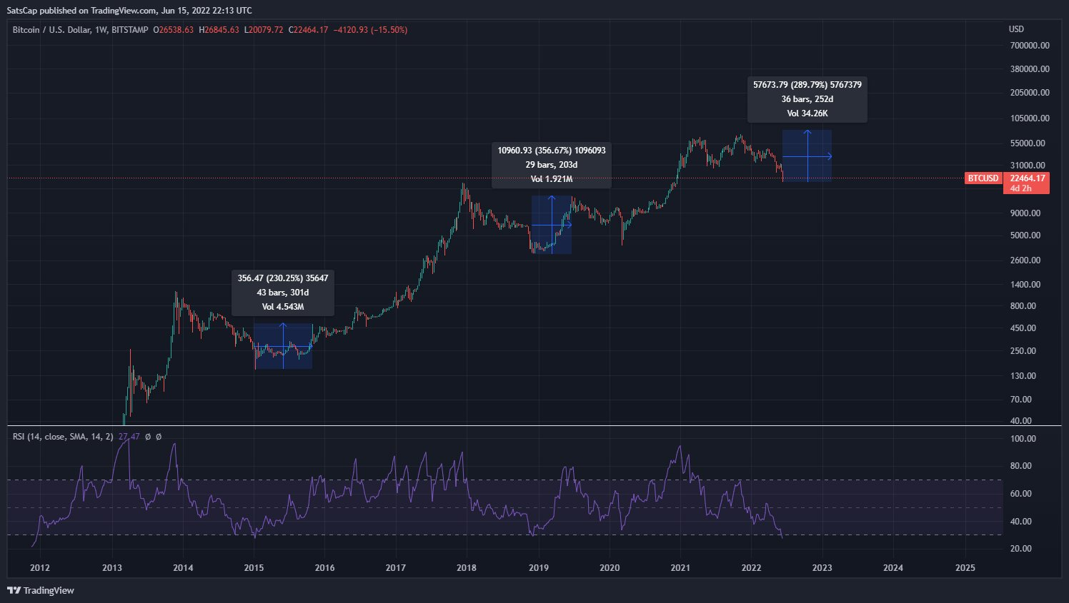 Eben weiterer kleiner Teil BTC gekauft bei 20,1k USD. Ich gehe derzeit von einem maximalen Tiefkurs von ca. 17k USD aus (300 Week MA), aber was weiß ich schon ?